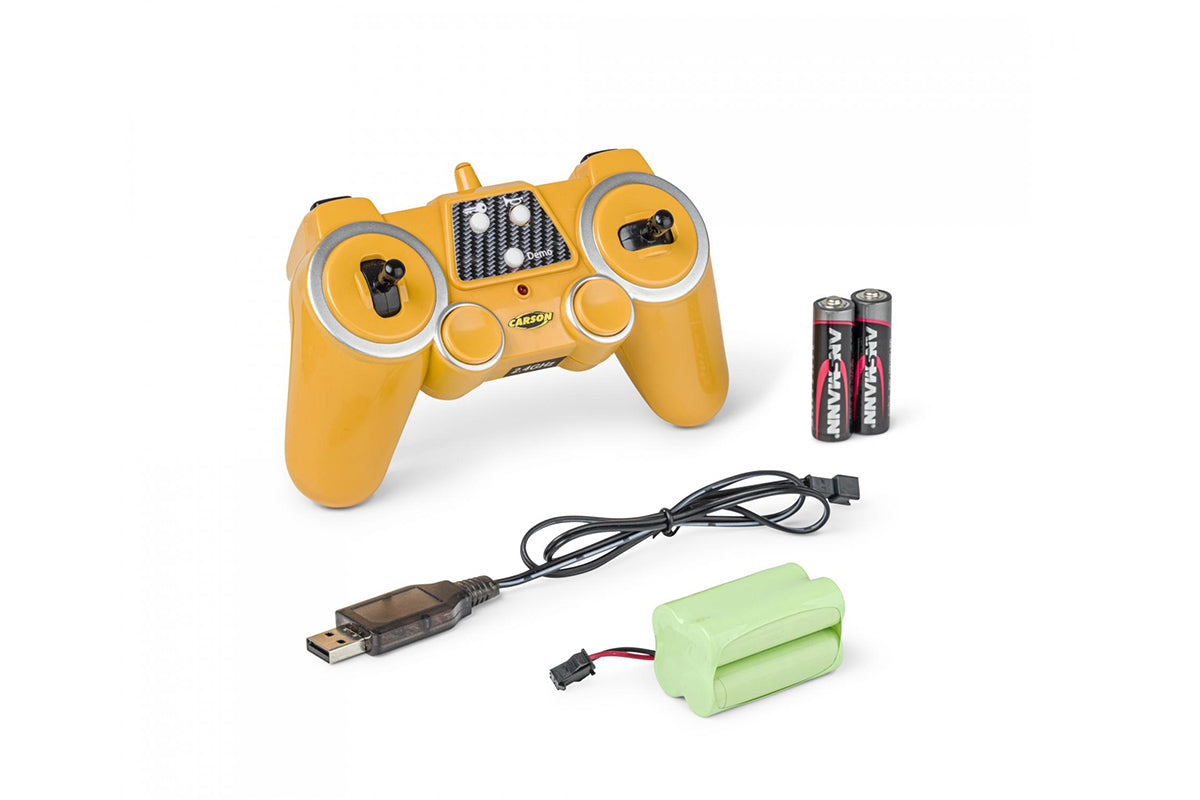 Ce tracteur, sous licence du constructeur britannique JCB, impressionne par ses nombreux détails et fonctionnalités. Sa télécommande multicanaux 2,4 GHz sans interférences permet de contrôler les phares, le klaxon et le bruit du moteur. Grâce à ses pneus adhérents aux sculptures réalistes, ce tracteur jaune est performant en extérieur. La remorque doit être attelée manuellement, mais elle est motorisée par le tracteur, ce qui vous permet de lever et d'abaisser la plateforme de chargement via la télécommande ! Le tracteur est livré avec une télécommande, des piles pour la télécommande, une batterie rechargeable, un chargeur et un manuel d'utilisation. Il est prêt à l'emploi dès sa première charge. Achetez, chargez, roulez !