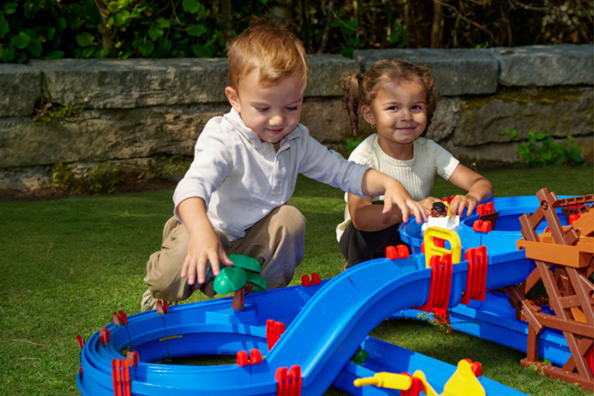 Mit Booten, Figuren und Zubehör entstehen immer neue Spielideen: Schleusen passieren, Wasserfälle durchqueren oder das Wasserrad antreiben. Robuste Materialien, einfache Montage und Erweiterungsmöglichkeiten machen das Set zu einem langlebigen Highlight – ideal für draußen und auch drinnen nutzbar.