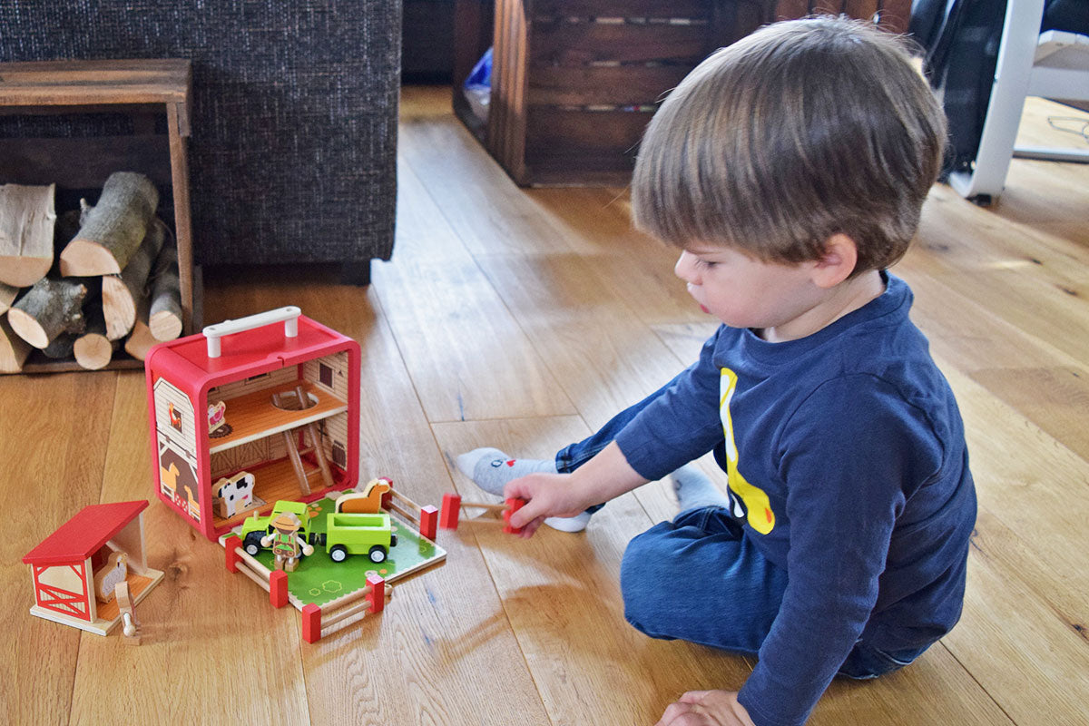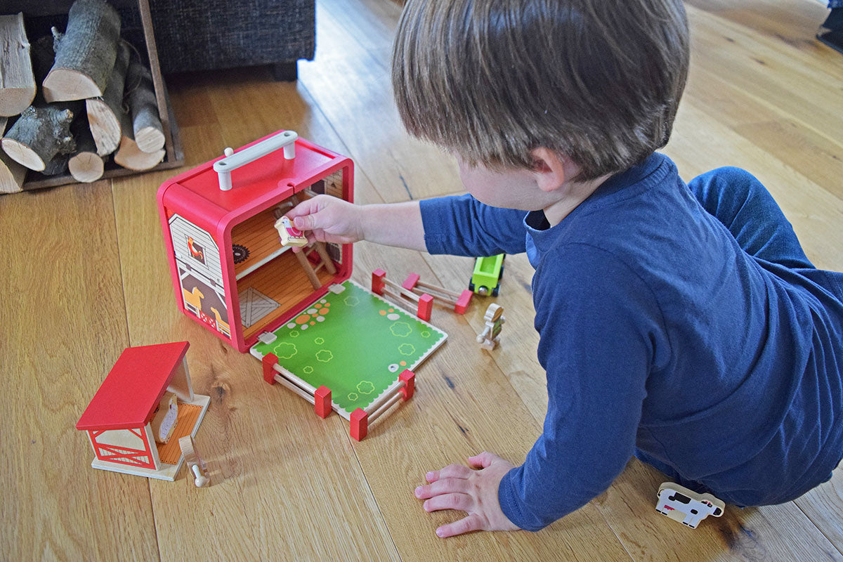 Ce coffret de ferme comprend de nombreuses figurines aux visages et détails soignés pour des aventures à la ferme passionnantes. La ferme offre deux niveaux d'espace de jeu et un pâturage dépliable. Son atout astucieux ? Sa fonction 2-en-1 : elle sert à la fois d'aire de jeu et de coffre de rangement pratique. Fixez simplement les parois latérales grâce aux attaches flexibles intégrées ou dépliez-les pour jouer !