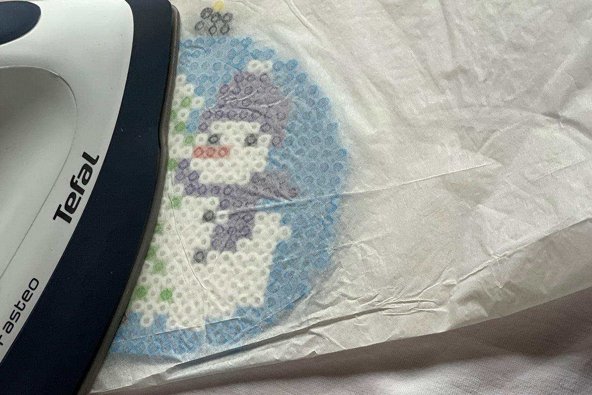 - Déposez du papier à repasser sur les perles et repassez-les pendant quelques secondes. Continuez à repasser jusqu'à ce que les perles commencent à fondre.