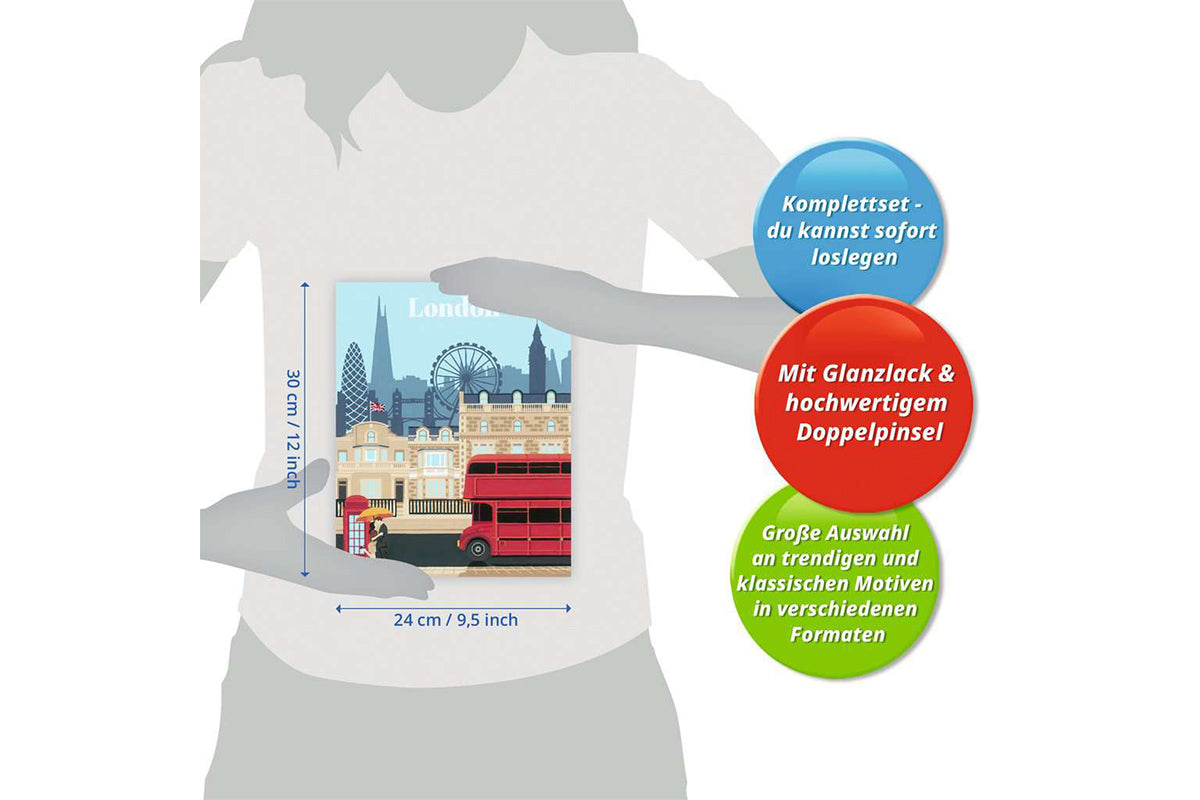 New York, Paris, Milan et bien d'autres ! Découvrez les plus belles villes du monde et emportez leur magie chez vous grâce à nos kits de peinture par numéros ! Le motif tendance « Londres colorée » offre un plaisir de peindre fantastique aux adultes dès 12 ans. Les contours sont pré-imprimés et numérotés, prêts à être peints avec les peintures acryliques prémélangées. Plaisir et réussite garantis pour une décoration murale unique de votre ville. Peindre n'a jamais été aussi simple ! Trouvez la paix intérieure et détendez-vous avec CreArt - Peinture par numéros de Ravensburger. Déballez et commencez à peindre : chaque kit contient tout le nécessaire, et il n'est pas nécessaire de mélanger les couleurs. Une fois terminée, la peinture devient une décoration tendance pour toute la maison. Le programme CreArt - Peinture par numéros de Ravensburger propose un large choix de motifs pour enfants et adultes.