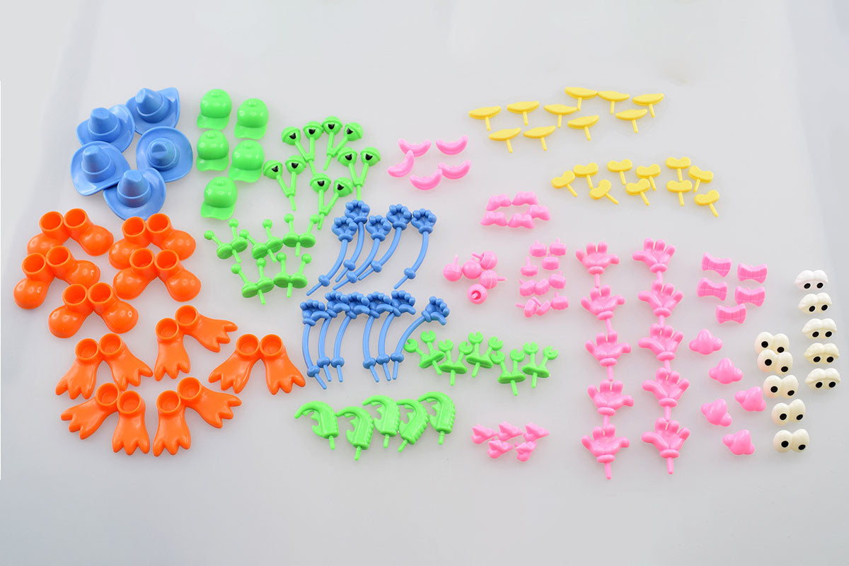 Ce coffret contient 128 pièces qui transforment votre pâte à modeler en une figurine amusante. Vous avez le choix parmi une variété d'éléments colorés, comme des membres, des yeux et des couvre-chefs. La pâte à modeler n'est pas incluse.