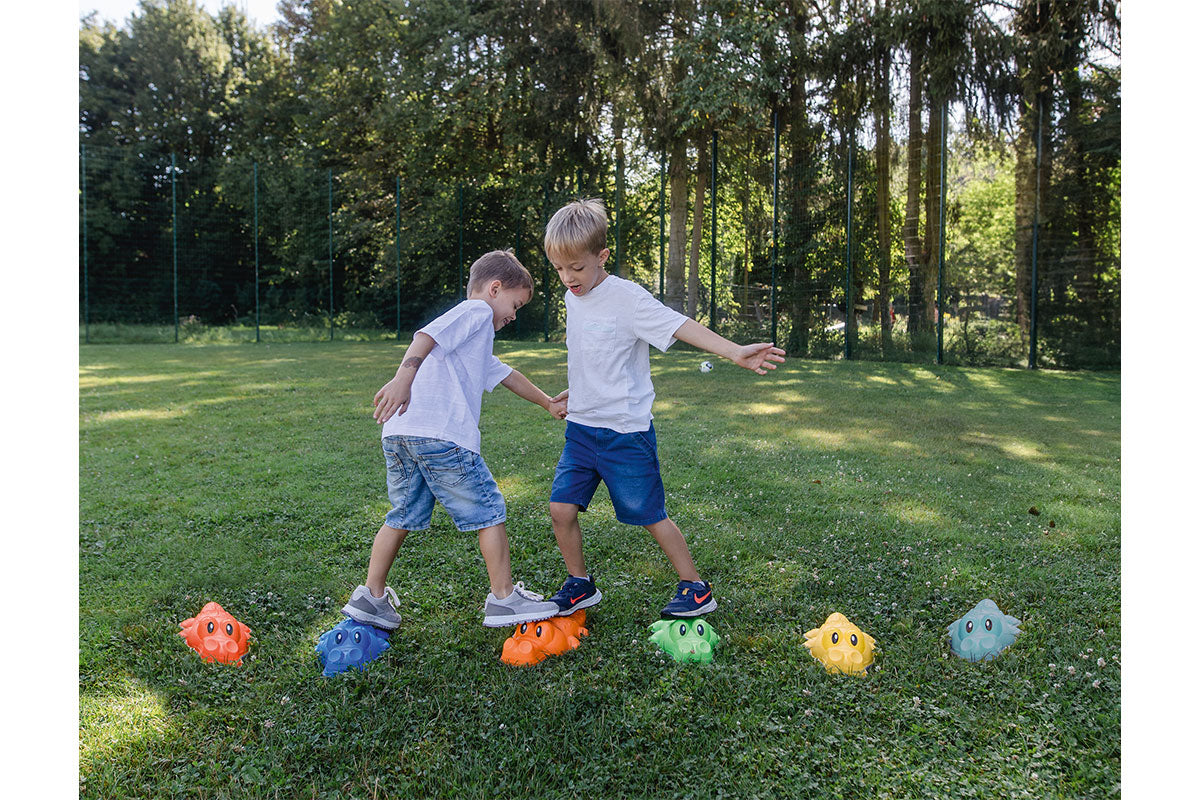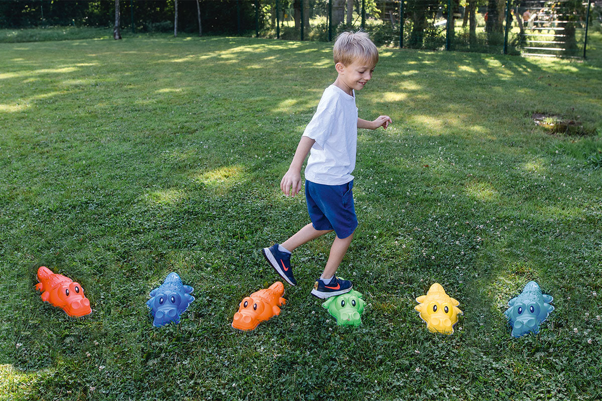 KrokoSteps – un ensemble de 6 pierres d'équilibre, idéal pour développer la coordination des enfants. Ces pierres les aident à mieux évaluer les distances et à surmonter leur appréhension à sauter sur des objets en hauteur. Grâce à leur bord en caoutchouc antidérapant, elles offrent une adhérence optimale sur différentes surfaces, aussi bien à l'intérieur qu'à l'extérieur. Cet ensemble permet un entraînement ludique et efficace, favorisant l'équilibre et le développement physique.