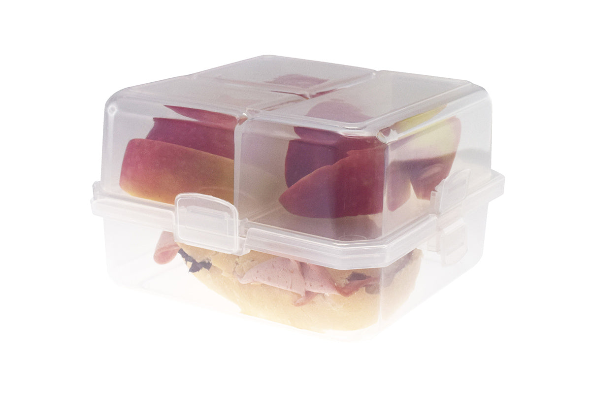 Une boîte à lunch très pratique avec deux compartiments séparés, dont l'un est divisé en trois plus petits. Fabriquée en polypropylène (PP) non toxique et apte au contact alimentaire, elle passe au lave-vaisselle et peut être congelée.