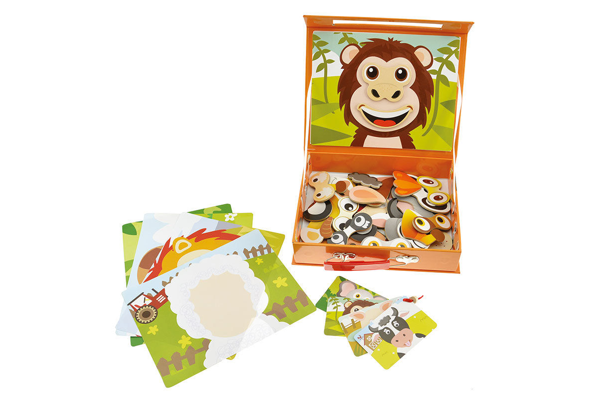 Un zèbre à nez de koala, un tigre à oreilles de cochon… Ces visages d'animaux magnétiques permettent de créer un zoo imaginatif et en constante évolution. Les enfants peuvent simplement choisir un visage vierge et laisser libre cours à leur imagination. Ceux qui préfèrent une approche plus réaliste peuvent bien sûr utiliser les petits modèles fournis comme guide.