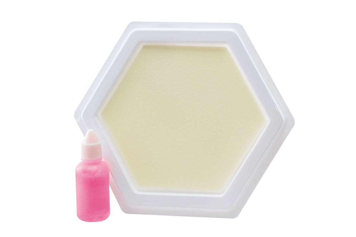 Un tampon encreur vierge de taille XXL et une bouteille refermable sont inclus !