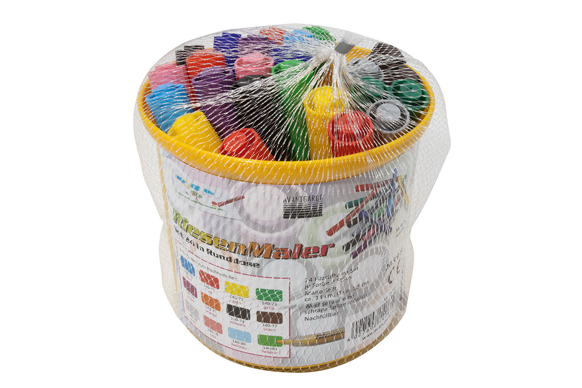 L'ensemble comprend 2 pinceaux géants de chaque couleur : rouge, bleu, jaune, vert, violet, orange, noir, marron, gris, rose, bleu clair et vert clair.