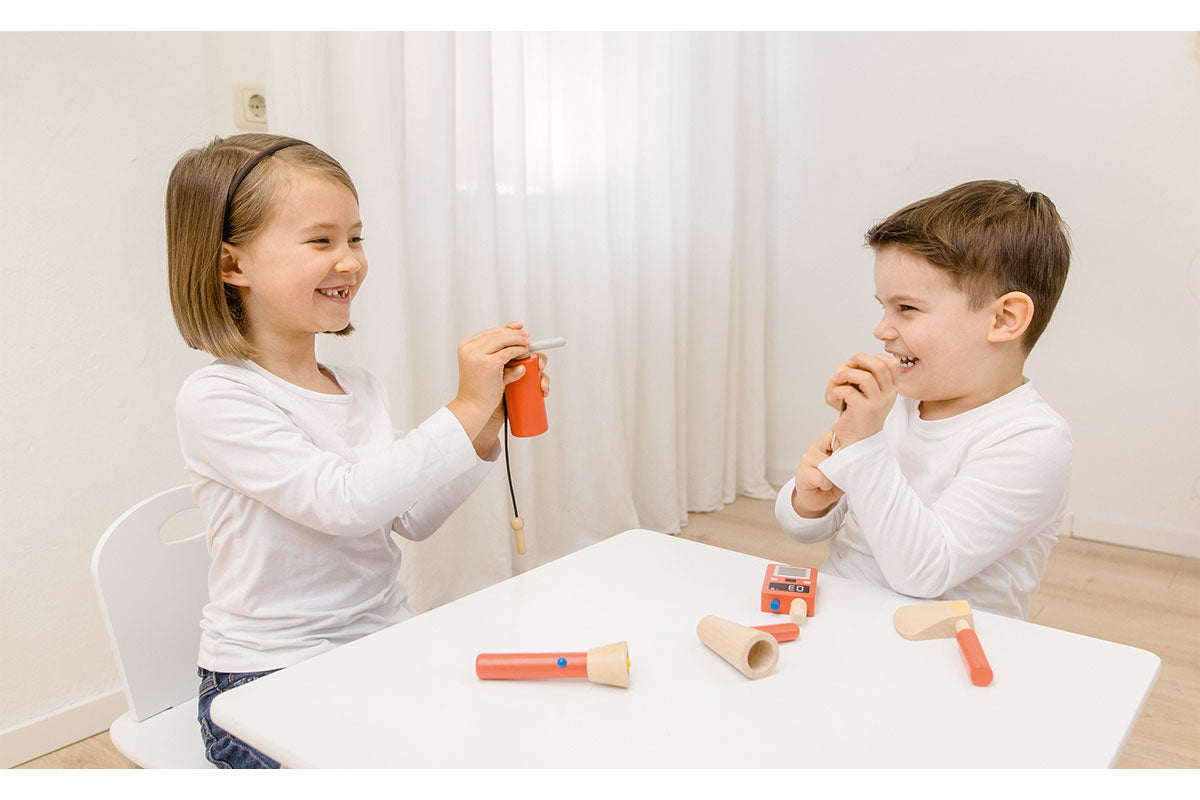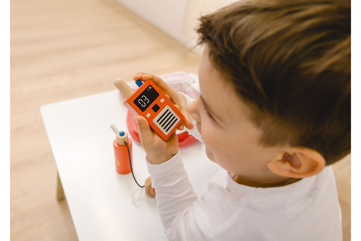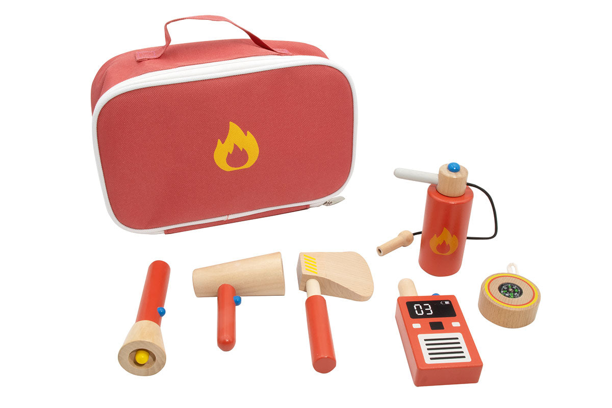Avec le sac de pompier pour jeux de rôle, les petits héros sont parfaitement équipés ! Ce sac en coton robuste contient une lampe torche, un mégaphone, une hache, un talkie-walkie, une boussole et un extincteur – le tout fabriqué en bois de haute qualité certifié FSC®.