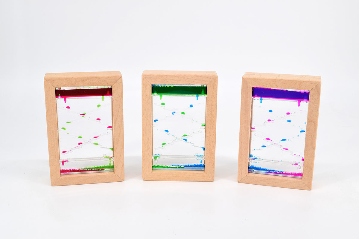 Les sabliers liquides sont composés d'un mélange eau-huile. Ils sont certifiés conformes à la norme EN71/1-3.
