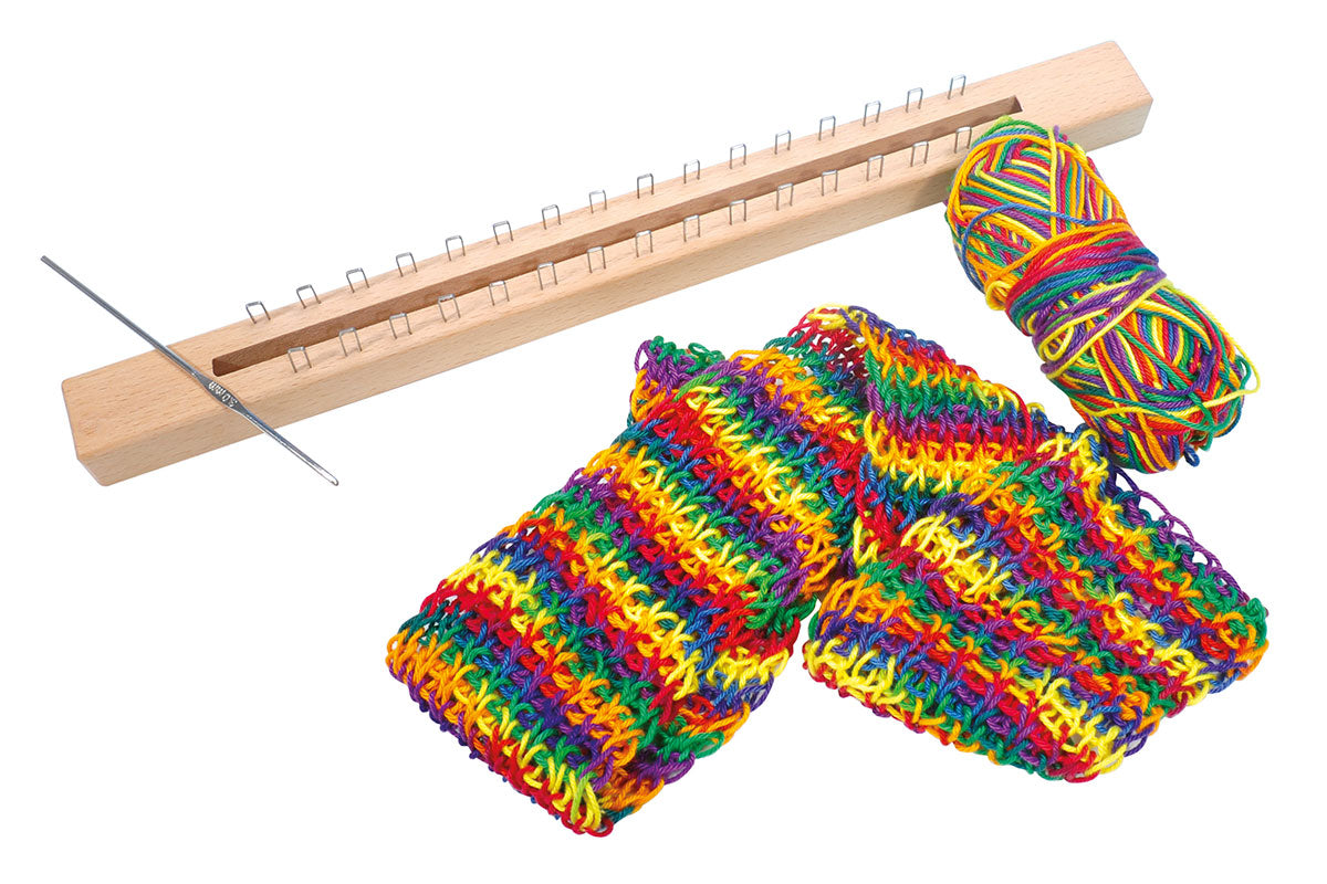 Quiconque connaît le chariot à tricoter peut utiliser le même principe pour tricoter de magnifiques chemins de table et écharpes avec notre bâton à tricoter !