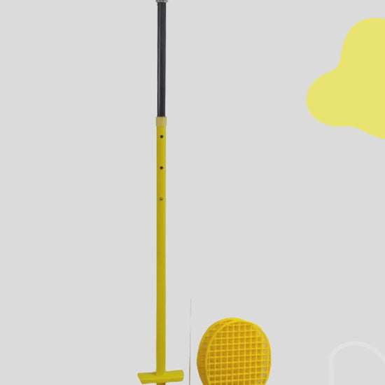 Les robustes tubes d'acier doivent être torsadés ensemble, puis la tige est enfoncée dans le sol et le jeu rapide peut commencer !