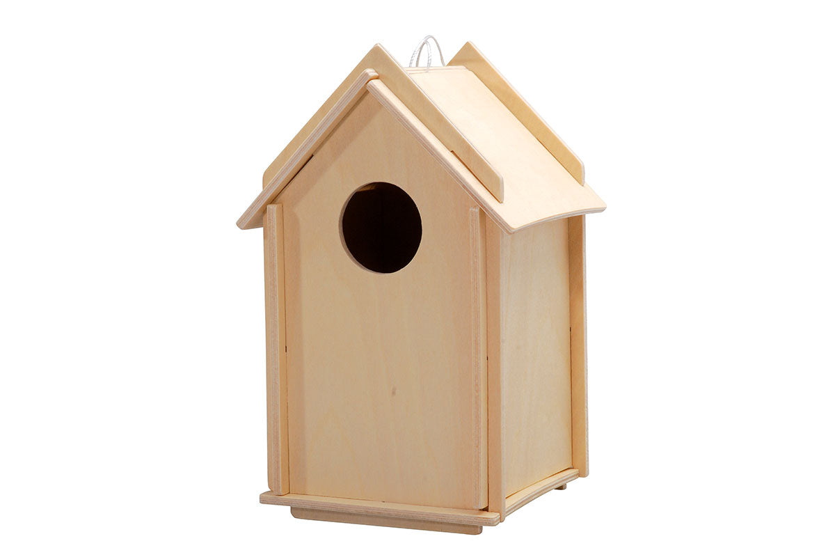 Un kit en contreplaqué pour un montage facile. Les enfants adorent observer les oiseaux nicher dans le nichoir. Très simple et facile à assembler. Le nichoir est fabriqué en bois tendre et peut être décoré avec de la peinture pour bois ou d'autres peintures.