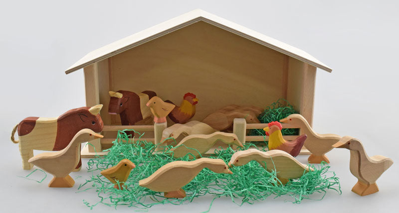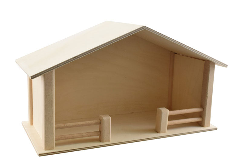 L'étable en bois convient aux crèches vivantes ou à tout jeu de rôle avec des animaux, comme une ferme.
