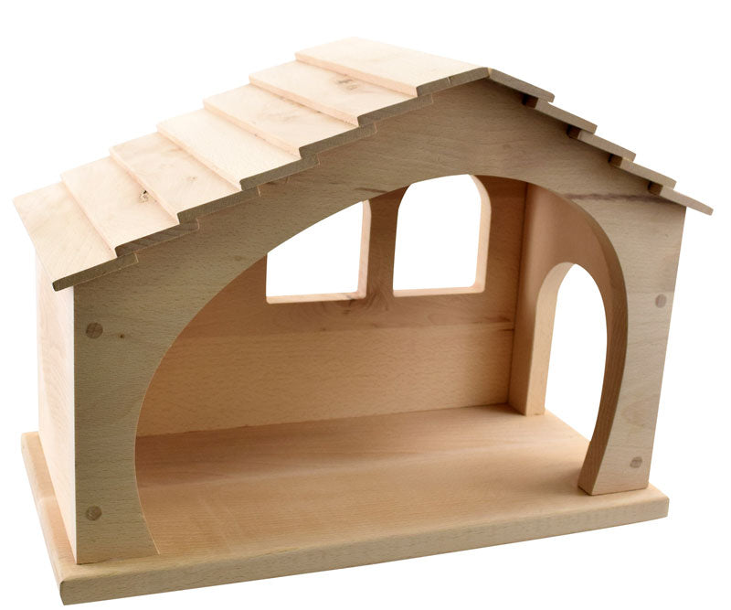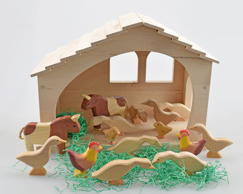 L'étable en bois convient aux crèches vivantes ou à tout jeu de rôle avec des animaux, comme une ferme.